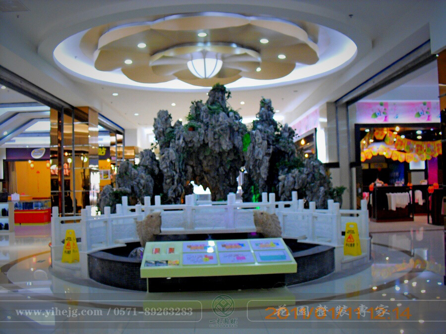 揚州力保廣場假山水景|商場中庭景觀設(shè)計|假山小品制